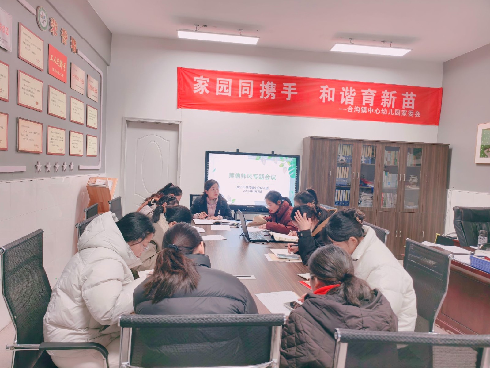 开学伊始,幼儿园召开全体教职工大会,园长对新学期的工作进行全面部署,明确工作目标与重点。教师们认真聆听、积极研讨,将各项工作任务细化落实到人,为新学期工作开展筑牢基础、明晰方向。